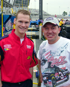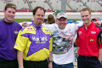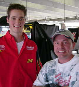 This is Jason Seitzinger, shock specialist, and pit support for the #24 Jeff Gordon Dupont Team. I gave him one of my "That Ain't Right!" CD's last year at Darlington, and he told me today that Jimmie Johnson driver for the Jeff Gordon owned #48 Lowes Chevrolet, laughed when he heard it. |