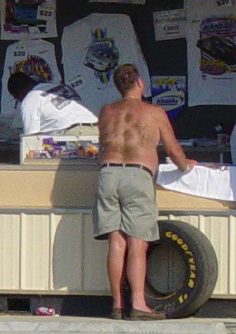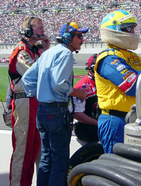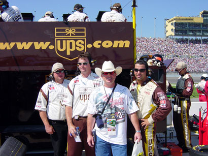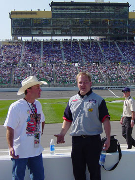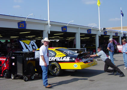 Here I am discussing strategy with one of my new buddies Bosserman on the #48 Jimmie Johnson Lowes team. He liked the "That Ain't Right!" CD that I gave him in Darlington. |