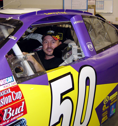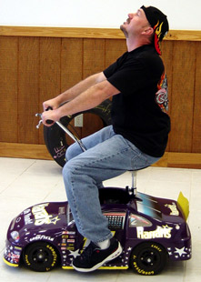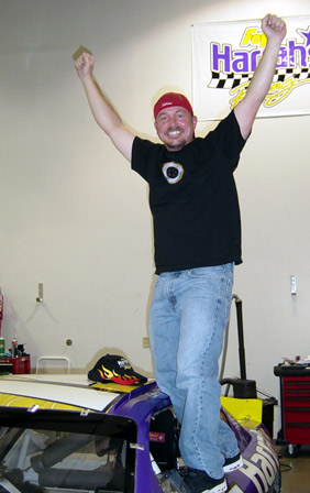 This is me pretending I am in the winner circle...cheering fans, champagne showers, pretty girls kissin' me...yeah right! |