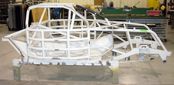 This is what's left of the car that Larry hit the wall in during qualifying at Indianapolis. The rear of the chassis has been cut off and this part of it is being sent back to be rebuilt. |